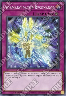 When a monster effect is activated, while you control an "Adamancipator" Synchro Monster: Negate the activation, and if you do, destroy it.