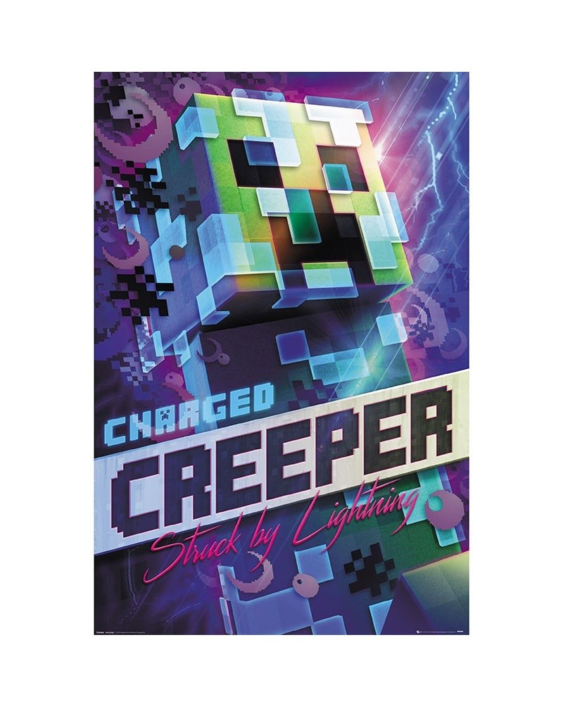 Κάθετη αφίσα με ένα Charged Creeper από το βιντεοπαιχνίδι Minecraft.