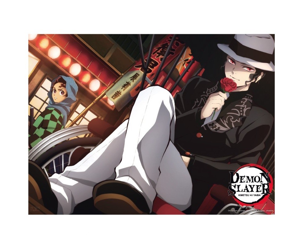 Οριζόντια αφίσα με τους Kibutsuji Muzan και Tanjiro Kamado από την anime σειρά Demon Slayer.