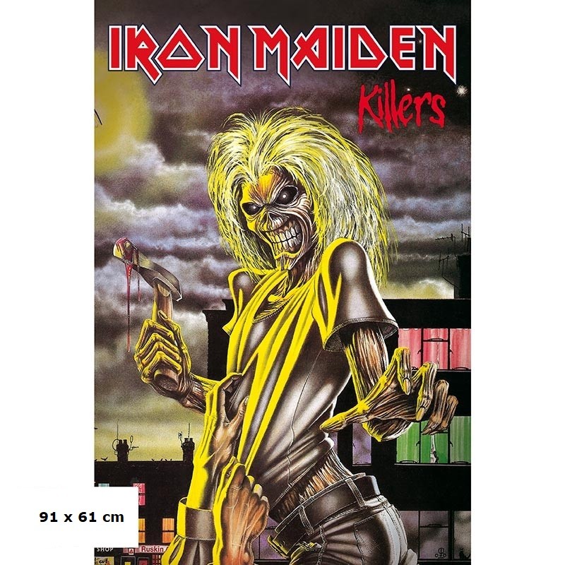 Κάθετη αφίσα με τον Eddie, την μασκότ του μουσικού συγκροτήματος Iron Maiden, από το εξώφυλλο του album "Killers".