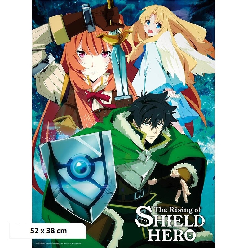 Κάθετη αφίσα τοίχου με τους Naofumi, Raphtalia και Filo από την anime σειρά The Rising of the Shield Hero, έτοιμους για μια ακόμα επική μάχη!
