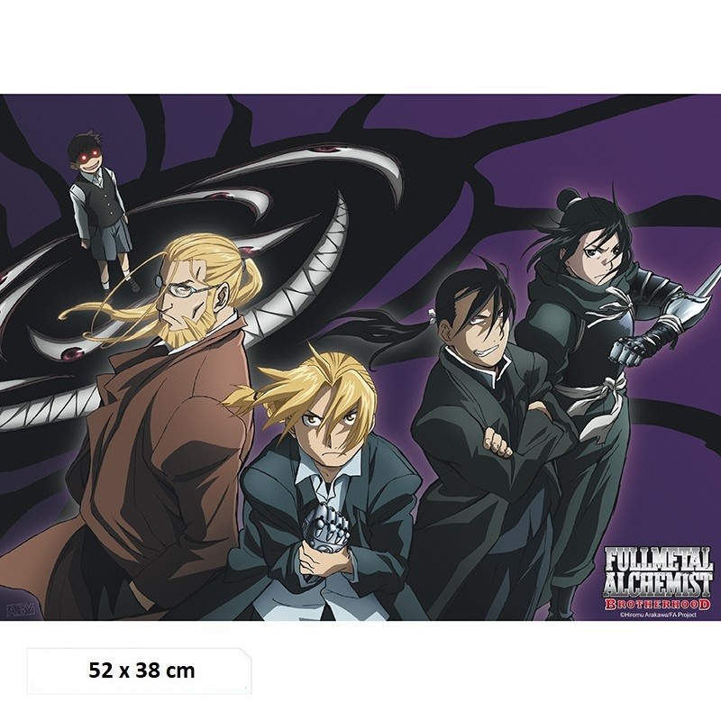 Οριζόντια αφίσα με τους Edward Elric, Ling Yao, Lan Fan, Van Hohenheim και τον Pride από την anime σειρά anime σειράς Fullmetal Alchemist: Brotherhood.