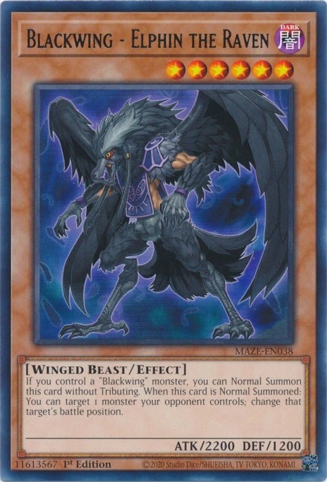 If you control a "Blackwing" monster, you can Normal Summon this card without Tributing. When this card is Normal Summoned: You can target 1 monster your opponent controls; change that target's battle position.