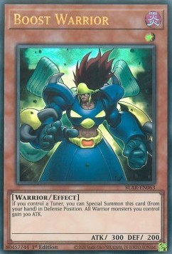 If you control a Tuner, you can Special Summon this card (from your hand) in Defense Position. All Warrior monsters you control gain 300 ATK.ATK/DEF 300/200.