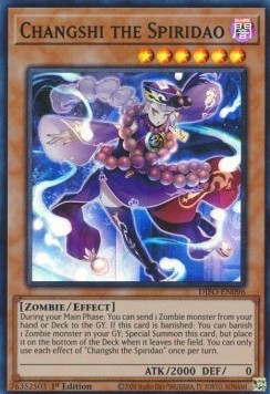 During your Main Phase: You can send 1 Zombie monster from your hand or Deck to the GY. If this card is banished: You can banish 1 Zombie monster in your GY; Special Summon this card, but place it on the bottom of the Deck when it leaves the field. You can only use each effect of "Changshi the Spiridao" once per turn.