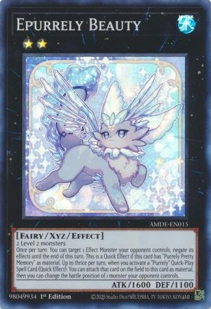 Once per turn: You can target 1 Effect Monster your opponent controls; negate its effects until the end of this turn. This is a Quick Effect if this card has "Purrely Pretty Memory" as material. Up to thrice per turn, when you activate a "Purrely" Quick-Play Spell Card (Quick Effect): You can attach that card on the field to this card as material, then you can change the battle position of 1 monster your opponent controls.