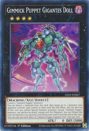 You can detach 2 materials from this card, then target up to 2 monsters your opponent controls; gain control of them until the End Phase, also for the rest of this turn you cannot Special Summon monsters, except "Gimmick Puppet" monsters, nor declare an attack, except with Xyz Monsters. You can Tribute this card; all monsters you currently control become Level 8 until the end of this turn. You can only use each effect of "Gimmick Puppet Gigantes Doll" once per turn.