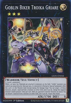 While 3 or more Xyz Materials are attached to monsters on the field, "Goblin" monsters you control can attack directly. Once per turn, if a monster(s) is Normal or Special Summoned, while this card is in the Monster Zone (except during the Damage Step): You can target 1 of those monsters; detach 1 material from a monster on either field, and if you do, change the targeted monster's battle position. Once per turn, when an opponent's monster declares an attack: You can detach 1 material from a monster on either field, and if you do, negate that attack.