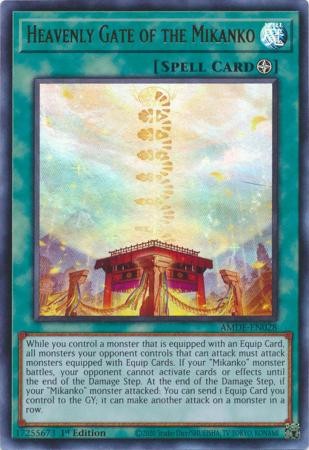 While you control a monster that is equipped with an Equip Card, all monsters your opponent controls that can attack must attack monsters equipped with Equip Cards. If your "Mikanko" monster battles, your opponent cannot activate cards or effects until the end of the Damage Step. At the end of the Damage Step, if your "Mikanko" monster attacked: You can send 1 Equip Card you control to the GY; it can make another attack on a monster in a row.