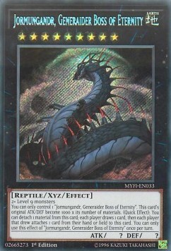 You can only control 1 "Jormungandr, Generaider Boss of Eternity". This card's original ATK/DEF become 1000 x its number of materials. (Quick Effect): You can detach 1 material from this card; each player draws 1 card, then each player that drew attaches 1 card from their hand or field to this card. You can only use this effect of "Jormungandr, Generaider Boss of Eternity" once per turn.