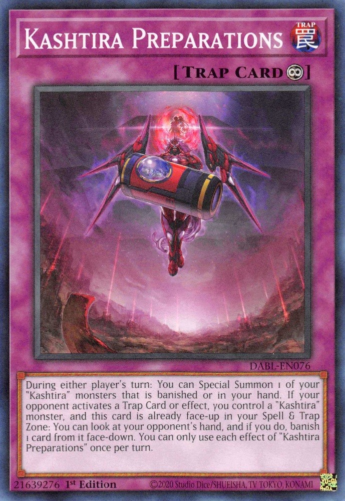 During either player's turn: You can Special Summon 1 of your "Kashtira" monsters that is banished or in your hand. If your opponent activates a Trap Card or effect, you control a "Kashtira" monster, and this card is already face-up in your Spell & Trap Zone: You can look at your opponent's hand, and if you do, banish 1 card from it face-down. You can only use each effect of "Kashtira Preparations" once per turn.