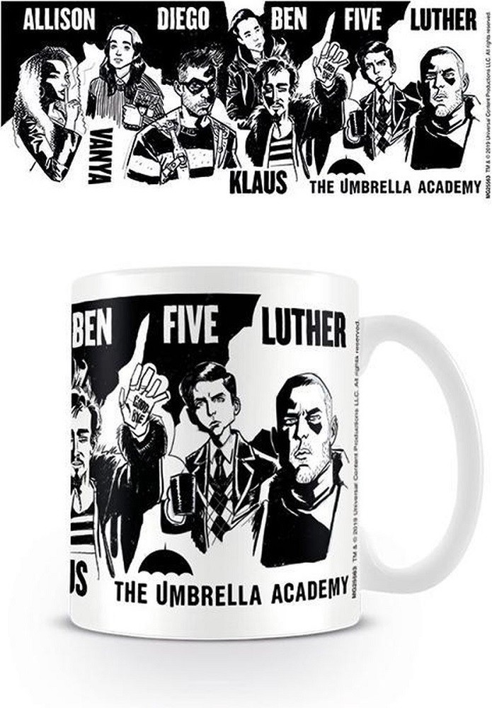 Κεραμική κούπα με τους βασικούς πρωταγωνιστές της τηλεοπτικής σειράς The Umbrella Academy.