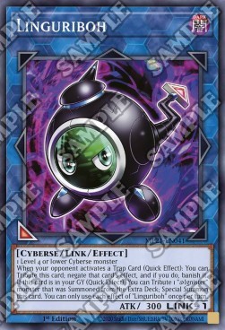 1 Level 4 or lower Cyberse monster When your opponent activates a Trap Card (Quick Effect): You can Tribute this card; negate that card's effect, and if you do, banish it. If this card is in your GY (Quick Effect): You can Tribute 1 "@Ignister" monster that was Summoned from the Extra Deck; Special Summon this card. You can only use each effect of "Linguriboh" once per turn.