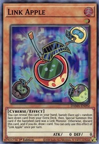You can reveal this card in your hand; banish (face-up) 1 random face-down card from your Extra Deck, then, Special Summon this card if the banished card was a Link Monster. Otherwise, discard this card, and if you do, draw 1 card. You can only use this effect of "Link Apple" once per turn.