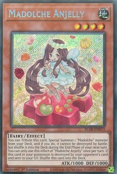 You can Tribute this card; Special Summon 1 "Madolche" monster from your Deck, and if you do, it cannot be destroyed by battle, but shuffle it into the Deck during the End Phase of your next turn. You can only use this effect of "Madolche Anjelly" once per turn. If this card in your possession is destroyed by your opponent's card and sent to your GY: Shuffle this card into the Deck.