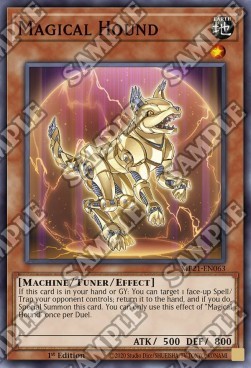 If this card is in your hand or GY: You can target 1 face-up Spell/Trap your opponent controls; return it to the hand, and if you do, Special Summon this card. You can only use this effect of "Magical Hound" once per Duel.