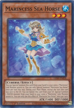 You can Special Summon this card (from your hand) to your zone a "Marincess" Link Monster points to. You can only Special Summon "Marincess Sea Horse" once per turn this way. During your Main Phase, except the turn this card was sent to the GY: You can banish this card from your GY; Special Summon 1 WATER monster from your hand to your zone a "Marincess" Link Monster points to. You can only use this effect of "Marincess Sea Horse" once per turn.