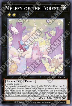 2 Level 2 monsters You can detach 1 material from this card; add 1 "Melffy" card from your Deck to your hand. If another face-up "Melffy" monster you control returns to your hand (except during the Damage Step): You can target 1 face-up monster your opponent controls; it cannot attack, also its effects are negated while it is face-up on the field. You can only use each effect of "Melffy of the Forest" once per turn.