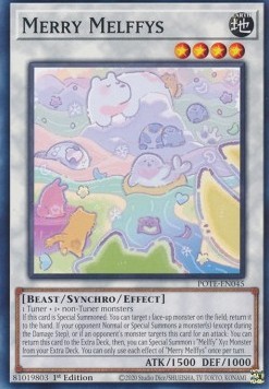 If this card is Special Summoned: You can target 1 face-up monster on the field; return it to the hand. If your opponent Normal or Special Summons a monster(s) (except during the Damage Step), or if an opponent's monster targets this card for an attack: You can return this card to the Extra Deck, then, you can Special Summon 1 "Melffy" Xyz Monster from your Extra Deck. You can only use each effect of "Merry Melffys" once per turn.