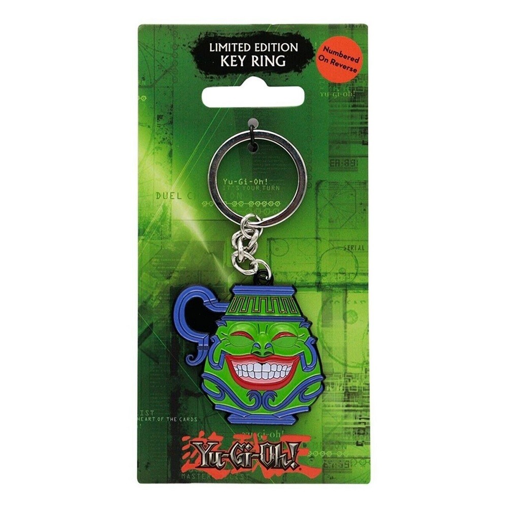 Μεταλλικό μπρελόκ με την κάρτα Pot of Greed, από την anime σειρά Yu-Gi-Oh.
