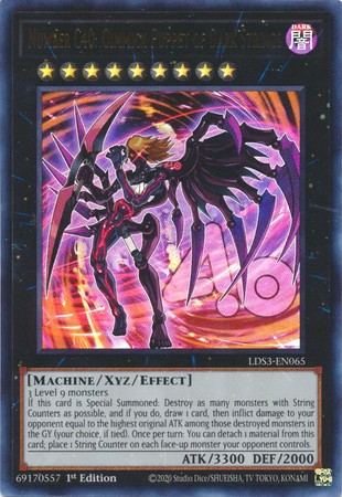 When this card is Special Summoned: Destroy the monsters with String Counters, and if you do, draw 1 card, then inflict damage to your opponent equal to the highest original ATK among those destroyed monsters in the Graveyard (your choice, if tied). Once per turn: You can detach 1 Xyz Material from this card; place 1 String Counter on each face-up monster your opponent controls.