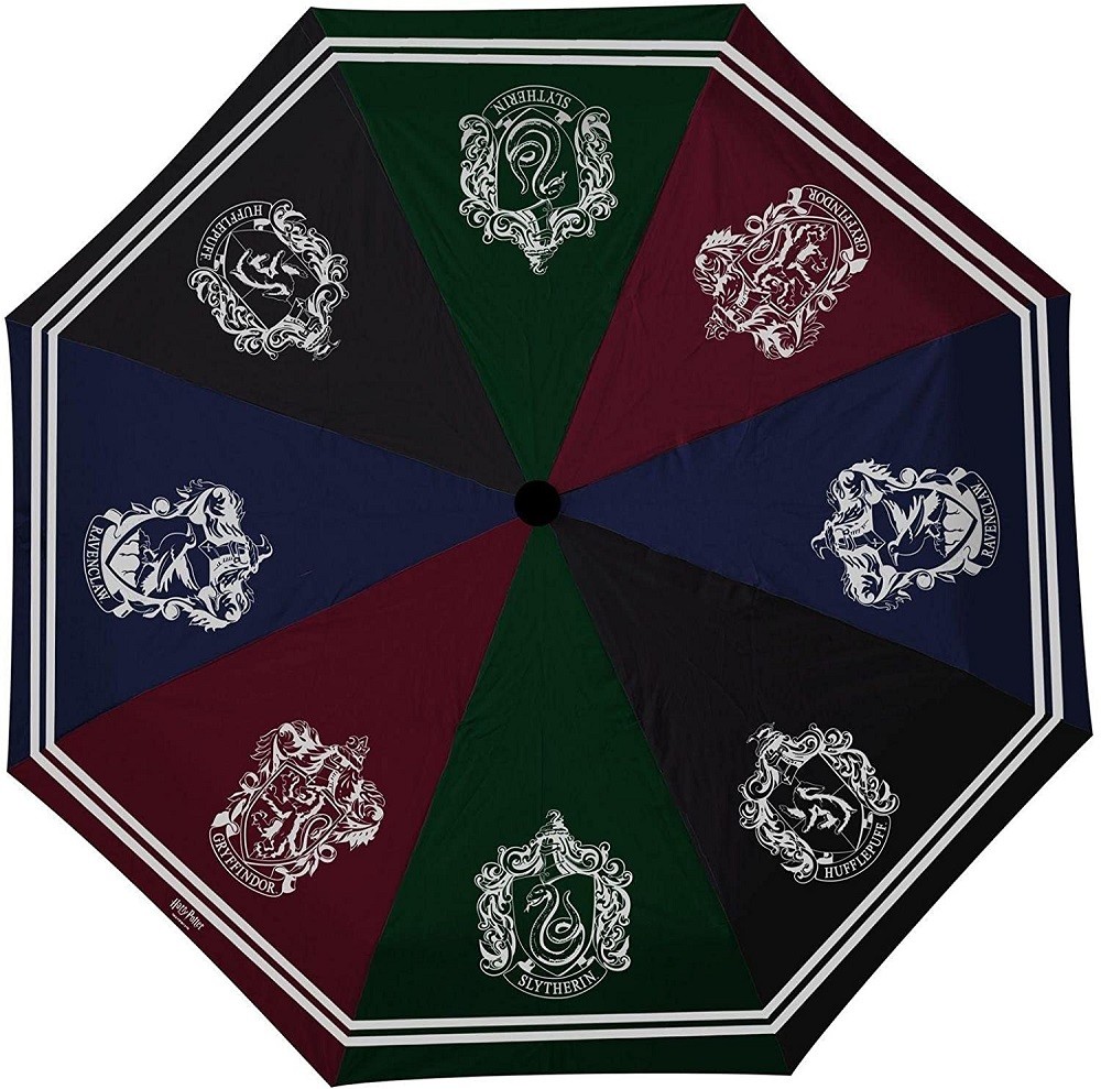 Ομπρέλα βροχής με τα σύμβολα από τους 4 οίκους του σχολείου Hogwarts (Gryffindor, Slytherin, Ravenclaw, Hufflepuff) από την σειρά βιβλίων και ταινιών Harry Potter.