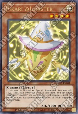If this card is Normal or Special Summoned: You can add 1 "A.I." Spell/Trap from your Deck to your hand. You can target 1 "@Ignister" monster you control; its Level becomes 4 until the end of this turn. You can only use each effect of "Pikari @Ignister" once per turn.