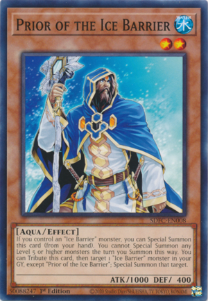 If you control an "Ice Barrier" monster, you can Special Summon this card (from your hand). You cannot Special Summon any Level 5 or higher monsters the turn you Summon this way. You can Tribute this card, then target 1 "Ice Barrier" monster in your GY, except "Prior of the Ice Barrier"; Special Summon that target.