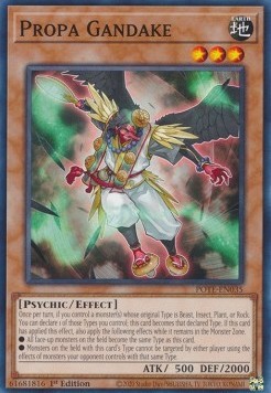 Once per turn, if you control a monster(s) whose original Type is Beast, Insect, Plant, or Rock: You can declare 1 of those Types you control; this card becomes that declared Type. If this card has applied this effect, also apply the following effects while it remains in the Monster Zone.
