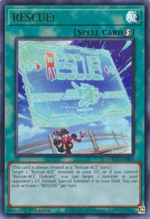 Target 1 "Rescue-ACE" monster in your GY, or if you control "Rescue-ACE Hydrant", you can target 1 monster in your opponent's GY instead; Special Summon it to your field. You can only activate 1 "RESCUE!" per turn.