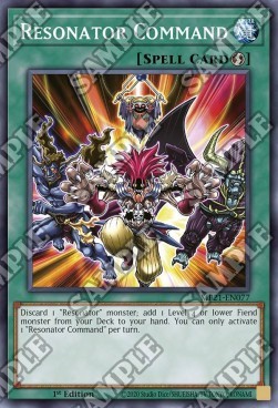 Discard 1 "Resonator" monster; add 1 Level 4 or lower Fiend monster from your Deck to your hand. You can only activate 1 "Resonator Command" per turn.