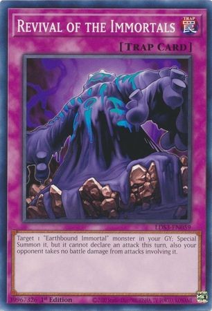 Target 1 "Earthbound Immortal" monster in your Graveyard; Special Summon it, but it cannot declare an attack this turn, also your opponent takes no battle damage from attacks involving it.