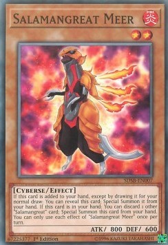 If this card is added to your hand, except by drawing it for your normal draw: You can reveal this card; Special Summon it from your hand. If this card is in your hand: You can discard 1 other "Salamangreat" card; Special Summon this card from your hand. You can only use each effect of "Salamangreat Meer" once per turn.