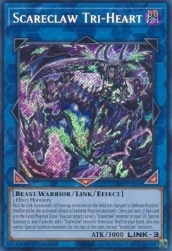 Must be Link Summoned. All face-up monsters on the field are changed to Defense Position. Unaffected by the activated effects of Defense Position monsters. Once per turn, if this card is in the Extra Monster Zone: You can target 1 Level 3 "Scareclaw" monster in your GY; Special Summon it, and if you do, add 1 "Scareclaw" monster from your Deck to your hand, also you cannot Special Summon monsters for the rest of this turn, except "Scareclaw" monsters.
