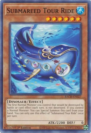 The first Normal Monster you control that would be destroyed by battle or card effect each turn, is not destroyed. If you control a Normal Monster: You can Special Summon this card from your hand. You can only use this effect of "Submareed Tour Ride" once per turn.