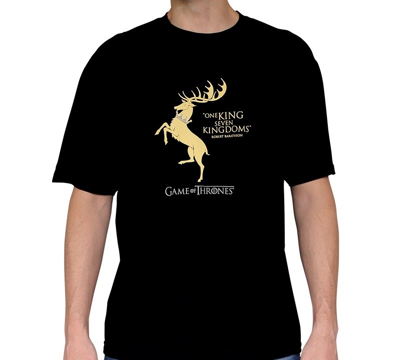 Κοντομάνικη μπλούζα / Τ-Shirt με το έμβλημα του Robert Baratheon και το μότο του "One King, Seven Kingdoms" από την τηλεοπτική σειρά Game of Thrones και την σειρά βιβλίων A Song of Ice and Fire.
