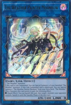 If this card is Link Summoned: You can Special Summon 1 of your banished "The Weather" monsters. If this Link Summoned card is destroyed: You can Special Summon 1 "The Weather Painter Rainbow" from your Extra Deck. "The Weather" Effect Monsters this card points to gain the following effect.
