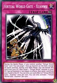 During the Battle Phase, if you control another "Virtual World Gate" card: You can target 1 face-up monster on the field; change its battle position. During your Main Phase: You can banish this card from your GY, then target 1 "Virtual World" monster in your GY; Special Summon it, but negate its effects, then send 1 card from your hand to the GY. You can only use each effect of "Virtual World Gate - Xuanwu" once per turn. You can only activate 1 "Virtual World Gate - Xuanwu" per turn.