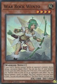 If your EARTH Warrior monster battles an opponent's monster, during damage calculation (Quick Effect): You can pay 800 LP; your battling monster gains 800 ATK, until the end of this turn. If this card is sent from your Monster Zone to your GY by an opponent's card effect: You can Special Summon 1 Level 5 or higher "War Rock" monster from your hand or Deck. You can only use each effect of "War Rock Wento" once per turn.